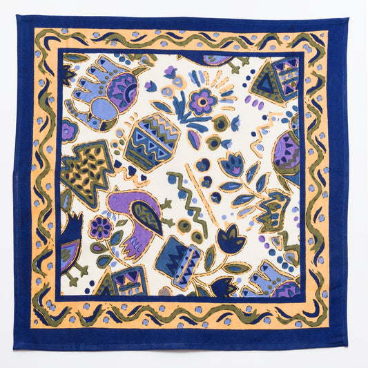 Birds and Flower Block Printed Napkin Set of 4